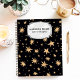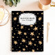 Skriv ner dina anteckningar och tankar i denna personliga anteckningsbok inspirerad av himlen. Med en trendig marinblå bakgrund prydd med guldvattenfärgade stjärnor är denna anteckningsbok perfekt för stjärnskådare, drömmare och alla som älskar en touch av glitter. Anpassa den med ditt namn eller initialer för en unik och personlig touch.