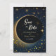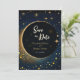 Midnatt Blå Stjärnor Måne himmelsk Halo bröllop Spara Datumet