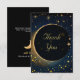 Dela med hjärtlig tacksamhet under stjärnorna med detta Midnattsblå stjärnor måne himmelska Halo bröllop Tacksamhetskort. Mot en romantisk midnattsblå himmel och inspirerad av en drömlik stjärnklar natt har denna design en lysande halvmåne omgiven av ett känsligt stjärnbildsmönster och ett mjukt glödande halo. De mystiska kosmiska detaljerna skapar en förtrollande och elegant finish som perfekt speglar magin i din fest. Genomtänkt utformad för att samordna med din himmelska svit är detta Tacksamhetskort ett vackert sätt att uttrycka uppskattning samtidigt som man hedrar de oförglömliga ögonblicken som delades under en gnistrande midnattsblå himmel.