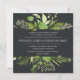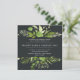Vår bröllopsinbjudan från midnatt Garden i ett unikt fyrkantigt format, ramar, dina bröllop-uppgifter med en överkant och grund gräns med målad vattenfärgsgrej i lush-skuggor av vår grönt, oliv och färja. Ett modernt men biologiskt val för vår eller bröllop under sommaren med färska löv i grönt under årets färg 2017, mot bakgrund av elegantens mörk.