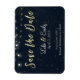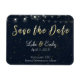 De här magneterna kommer att wow dina framtida bröllop gäster! Perfekt för en natt bröllop. Även underbart för en vinter eller sommar bröllop. De här korten har en glamorös utformning av en nattbil himlar. Ovanpå magneten visas en elegant string ljus. Texten "Spara datumet" står i guld (utskriven effekt, inte guld-folie).