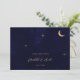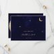 En modern kallelseinbjudan till ett lågprisbröllop har en enkel och elegant utformning. Den innehåller en guld-folie måne och stjärnor som är försiktigt gnistra, mot en midnattsblå bakgrund. Inbjudan användor klassisk serif-typografi, som ger en traditionell och formell kontakt med sitt vackra och tydliga stil.
