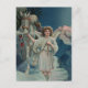 En vit häst som bär ett överflöd av gåvor leds längs ett farligt berg väg av en julängel. Denna unika och poetiska bild av den gamla världen är ganska ovanlig och utmärker sig från folkmassan. I likhet med det antika stil har vykortets baksida också en 1800-talskonstruktion.
