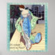 Detta är en fantastisk återgivning av en Haute Couture-illustration från själva tidigt 1900-talet. I kärlek är det levande färg och har hjälpt dem att "stoppa" genom att använda en mycket subtil bakgrund av akvariet/turkos lacy. På grund av modellens syfte kunde jag inte motstå att lägga till känslan: det är midnatt ... var är min prins?