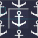 Midnatta blått och vit ankrar mönster tyg