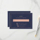 Dessa moderna och elegant bröllop OSA kort har en rik mitt i natten blå ram, med ett faux ro guld gräns.