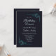 En elegant vid midnattsblått 40-dagars middagsinbjudan med turkos eller blommigt löv förskönade hörnen till ram om inbjudan.