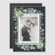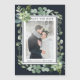 Det här bröllop spara datum-fotomagnetiska kortet har färgade vattenfärgssukulenta löv, eukalyptus och botaniska gröntar med en rektangulär ram i en blå halvnattsbakgrund. Matchande objekt är också tillgängliga.