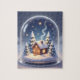 Träd in i en vinterdröm i miniatyr med denna förtrollande pusseldesign. Inkapslad i en kristallinsk glasklocka lyser en pittoresek stuga varmt mitt i en skog av snötäckta tallar. Ovanför är en hypnotisk natthimmel fylld med tindrande stjärnor och en mjuk strimma av rökguard som driver iväg i etern. Detta konstverk kombinerar den fridfulla stillheten under en vinternatt med en touch av lekfull magi, vilket gör det till ett lugnande och visuellt tillfredsställande projekt för pusselälskare i alla åldrar.
