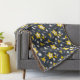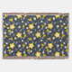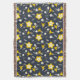 Retro-blommor och löv i vit, grått och gult över en midnattblå bakgrund. Bakgrunden till färg kan ändras.