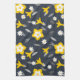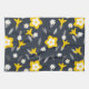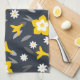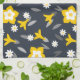 Retro-blommor och löv i vit, grått och gult över en midnattblå bakgrund. Bakgrunden till färg kan ändras.