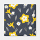 Retro-blommor och löv i vit, grått och gult över en midnattblå bakgrund. Bakgrunden till färg kan ändras.