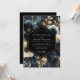 A dramatic and opulent design features deep midnight blue blooms intertwined with accents of creamy ivory and metallic gold foliage. This richly textured artwork evokes a sense of sophisticated romance.