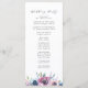 bröllopsprogram för blommigt av elegant med namn omringat av lila-, mauve- och blåfärgblommor med löv av grönt. Anpassa bröllopsprogrammen för blommigt genom att lägga till datum och plats för bröllop, händelseordning och bröllopsfest på baksidan. Designad att samordna med vår Midnight Blooms bröllop-samling.