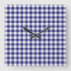 En snyggt väggklocka med en klassisk midnattsblå och vit kontrollerad gingham mönster-design. Finns i kvadratisk och rund form.