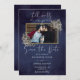 Midnight Blue Gothic Blommigt Photo Bröllop Spara Datumet