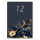Midnight Blue Guld Luxe Blommigt Bröllop Bord kort