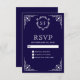 OSA kort av elegant med en elegant vit ornat gräns och ett vackert monogram mot en mörk blått bakgrund.