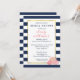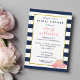 Välj dessa vackra inbjudningar till den moderna klassiska bruden! Har en djärv marinblå randig bakgrund, förgylld kant och en grupp peonior i vackra rosa nyanser. Koordinerar med våra marinblå randiga & rosa peonior kontorsmaterial, pappersvaror, heminredning och accessoarer.