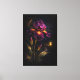 Set against a deep indigo-to-black backdrop, this graceful iris rises with soft, flowing petals in rich plum and magenta tones. Subtle gold accents and drifting flecks of light create a sense of depth and atmosphere, while a tiny glowing firefly adds a delicate touch of enchantment.