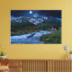 Berget och huset i snö täcktes av det vackra Sjö i Midnight Moonlit Wilderness, som för mer närmare naturen i detta Fantasy Landcape Photo.