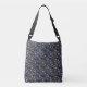 Add a little cheer to your day with a whimsical, hand-painted watercolor floral patterned bag, featuring playful purple-lavender daisy blooms dancing on a navy blue background.