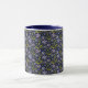 Add a little cheer to your day with a whimsical, hand-painted watercolor floral patterned mug, featuring playful purple-lavender daisy blooms dancing on a navy blue background.
