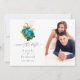 Turkos - teal och guld shabby-chic akvarell rosor bröllop save the date kort med elegant handskriven typografi och damask-mönster på baksidan.