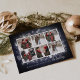 Elegantens helgdag-fotokort innehåller sex foton i en rutnätslayout, inramad av vit snöflingor på en rik med midnattsblå bakgrund som framkallar en snövinternatt. Anpassa det vackra julfotokortet med anpassningsbarna hälsning och namn längs grund i en chic som består av klassiska serif- och moderna kalligraftypsnitt.