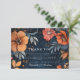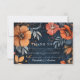 En frodig barockinspirerad design blommar i rika midnattsblå och brända höstblommor, perfekt för en stämningsfull men ändå romantisk bröllopsstämning. Djupt atmosfärisk och full av vintage charm, denna blomsterlayout är idealisk för höstceremonier, gotiska trädgårdsteman eller något par som söker en dramatisk och elegant ton. Anpassningsbar med era namn och evenemangsinformation, den sätter det perfekta första intrycket för er stora dag.