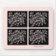 En modern botanisk design med fyra ramade paneler i en balanserad layout. Varje panel visar samma eleganta blomstersilhuett, med en raffinerad tvåfärgspalett som skapar kontrast och djup mot en mörk bakgrund.