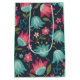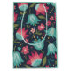 Make a bold statement with this striking floral pattern set against a deep charcoal-blue background. Featuring stylized tulips in rich magenta and soft teal, this design is accented by delicate pink blossoms and whimsical gold-flecked swirls. The dark canvas enhances the luminosity of the colors, making it an ideal choice for evening events, elegant birthday gifts, or a sophisticated winter-to-spring transition design.