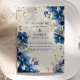 Ett lyxartat skrynktemat bröllop-mönster med en midnattsblå blommigt trädgård, skuggande guld-accenter och ett gyllene halvmånsfärdigt måne med en ornatbåge. Perfekt för par som vill ha ett romantiskt, mystiskt och stjärninspirerat firande med elegantens kosmiska detaljer.