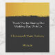 Lägg till en lyxig och personlig touch till din fest med den svarta guldbröllopsetiketten för vin, designad för att förhöja era bröllopsfavoriter, välkomstpresenter eller mottagningsbord. Med ett strålande guld band i kombination med en djup kolbas och elegant typografi förvandlar denna etikett varje flaska till ett minne. Personligad med era namn och bröllopsdatum, är den perfekt för flaskor med vin, champagne eller mousserande cider. Oavsett om den används som present till gästerna eller visas upp på er fest, passar denna etikett sömlöst ihop med hela Midnight Gold Wedding Suite och passar svarta band-bröllop, kvällsmottagningar och par som älskar en modern, polerad estetik.