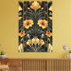 Anpassa tidslinjen Art Deco-sofistikering med det här krävande mönster. Blommor av släktet Lustrous guld är vackert kontrasterade av gråblått löv av elegant som på ett beundransvärt sätt krymper och sjunker till en bra. Till det klassiska Deco-överklagandet läggs tunt, raka guld linjer springa vertikalt uppifrån och ned till grund, mot en dramatisk svart bakgrund. Denna utformning balanserar perfekt motiven för den ekologiska blommigten med vasst geometriskt inslag, och fångar upp den lyxiga och raffinerade andan i Art Deco-eran. Perfekt för att lägga till en liten bit vintage glamor till vilket utrymme eller projekt som helst.
