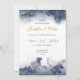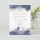 This elegant wedding invitation features deep navy and slate watercolor ink with shimmering gold accents framing the top and bottom, paired with modern typography and a touch of gold script for a luxurious yet contemporary look.