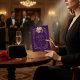 Midnight Masquerade Gold Feather Mask Purple Inbjudningar