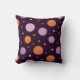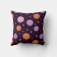 This statement throw pillow features a rich midnight plum background layered with oversized burnt tangerine and soft lilac polka dots, accented with delicate cream micro-dots for depth and balance.