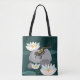 A detailed and naturalistic flat-style illustration of a fire salamander — rendered in dramatic black with vivid yellow spots — crawling across smooth grey rocks, surrounded by elegant white water lilies in a deep teal pond. The high contrast between the salamander's markings and the soft background creates a striking visual. This art piece appeals to nature enthusiasts and collectors of unique botanical and wildlife art.