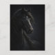 En slående svart häst framträder ur djup skugga i denna dramatiska ryttarporträtt. Mjukt ljus framhäver de graciösa linjerna i hästens ansikte och flödande man, vilket skapar en kraftfull och elegant bild.