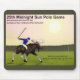 En polo-spelare som rider en mosa (Alces alces alces), en adukt som lyfts upp till strejka. Sol ligger lågt över den omgivande barrskogen. Texttexten "25 Midnight Sol Polo Game", "Sponsored by the North Star Polo Klubb", "Söndag at the Fairbanks Polo Grounds" och "Börjar omedelbart vid midnight Mosquitos och sort under åtta komma in free" visas också. Varje år leker Goldpanners basebolllaget i Fairbanks, Alaska i Midnight Sol Baseball Game. Spelet börjar kl. 12.00 på sommarsollen och lyfts bara av sol. Fairbanks ligger bara 160 sjömil söder om den arktiska cirkeln, sol börjar precis börja i norr när matchen börjar och, efter att den avslutats ungefär tre timmar senare, börjar sol åter att stiga upp - även i norr. Baseball är inte den enda sport som kan spelas på matchen. Och tanken på att rida en älg är inte ny. I norra Europa och Asien användes möss för att transportera förare och laster över ogästvänliga terräng. Som ett fäste har mosan ingen jämvikt när den korsar mossar och vindfällor, glider genom tjocklek, klättrar över sten och simmar snabbt över stora, farliga floder. I de täta barrskogar och mossar som täcker stora delar av norra Europa och Asien kan ett moder som rysk general Yermak Timofeyich inte köra ut från en älv när han började erövra Sibirien för Czar Ivan på 1600-talet. För att få överhanden över de sibiriska mosériderna förbjöd general Timofeitsch mosthållning, dödade av tama möss och jagade systematiskt ned mosfloder för att plantera, skada eller lemlästa dem offentligt som exempel för andra. Det är troligt att det bara var tillräckligt vanligt med dammuppfödning i de nordliga skogarna för att det skulle vara besvärligt, eftersom, som vi nu vet, alla deras fördelar som beaster av bördor är svåra för behållan i fångenskap. Om det hade varit en gemensam och lätt match skulle tuffen, äventyrliga kosackar säkert ha bytt berg och drivit mosresarna på lika villkor. I Europa användes även möss för att dra underbara avstånd över frysta slösar. En nackdel med detta sätt att använda en älg är att hästar som inte är bekanta med en älg vilt och blir okontrollerbara när de konfronteras med dessa egendomliga tittar varelser. På 1700-talet förbjöd stadsfullmäktige i den estniska staden Dorpat (Tartu) den tama mosen på sina gator. Man kan bara föreställa sig vilka havshästar som inte kan kontrolleras, som träffar en buss eller vagn, som kan slå sig ner på stadens smala gator efter att plötsligt ha kommit till ansikte till ansikte med en älg som ofrivilligt drar ett lår in i staden. Kung Karl XI från Sverige övervägde att sätta upp en kavalleriregim på älg, förmodligen för att dra nytta av den terror de skulle strejka in i fiendens hästars hjärtan. Ingen kanon- och musketbrand, inga lansar och sabers skulle behövas för att skingra fiendes kavallerianklagelse. Bara det faktum att en mosa dyker upp i slaggrunden skulle leda till att fiendes kavalli hamnade i en obarmhärtig flykt. Tyvärr kom kung julklappsplan till intet, och experiment med tama möss under detta århundrade visar tydligt varför. Moose skulle aldrig kunna blomstra som kavalleriberg på grund av sin katastrofala känslighet för djursjukdomar och på grund av de underbara svårigheterna att mata älgar ordentligt. Så sent som 1869 skrev den ryska zoologen och exploatören Alexander von Middendorff till tsarregeringen: "Till och med det civiliserade Europa har i dag misslyckats att tämja älgen, det djur som utan tvivel kan vara av underbar nytta. Vår regering bör göra allt den kan för att hålla detta djur i förvar. Det här är möjligt. Det skulle vara en underbar belöning, och det skulle också vara en ära." Efter 1700-talet blev mödouppfödning en bortglömd konst i nästan 400 år. I Sverige fördes i slutet av 1800-talet en debatt om det nationella värdet av att använda älgen som husdjur. Bland andra sak föreslogs att man skulle använda sig av moset vid postdistributionen, och det fanns ett förslag om att utveckla ett mosmonterat kavalleri. Sådana frieri förblev ogenomförda, främst på grund av att den omfattande jakten på möss nästan ledde till att den utrotades och på grund av aggressiviteten under ruttningsperioden. Tanken med mossen domesticering fick inte mycket dragkraft i det bisaristiska Ryssland. Men det återuppstod under 1930-talet i Sovjetunionen, och det föreslogs då att mosskavalleriet skulle kunna användas effektivt även i snö. År 1934 beordrade Sovjetregeringens naturreservkommitté att det skulle inrättas dammreservat (zapovedniks) och mösscentrum. Experimentellt arbete, som inleddes av Petr Alexandrovich Manteufel, tog ställe på flera platser: i Yakutia, vid Serpukhov Experimental Game Farm och i Buzuluksy Bor Nature Reserve i Orenburgregionen. De ryska vetenskapsmännen tog systematiskt itu med frågan om mödohållning och lyckades. De upptäckte att älgen kunde tränas till ge mjölk, bära laster eller rider, dra med sig slangar och stockar, gå till bete och gärna återvända till stallar. Arbetet avslutades dock inte i tid för Världskrig II, och när krig kom sopades hela idén om kavalleri som stridskraft bort. Efter krig drevs tanken på att tämja älgen igen, med fokus på jordbrukets använda. Man trodde att namn, vars elak i skörd vrider i ett algonkiskt språk, skulle kunna vara ett idealiskt sätt att förbättra utnyttjandet av biomassaproduktionspotentialen i norra Ryssland och östra Ryssland, som inte är särskilt lämpliga för vare sig livsmedelsplantering eller konventionell djurhållning. Om man skulle kunna odla mössen skulle man kunna ge dem praktiskt taget gratis mata, med hjälp av biprodukter från timmeravverkning: träd grenar och bark. Den första försöksdammanläggningen, som leds av Yevgeny Knorre, inleddes 1949 av personalen vid naturreservatet Pechora-Ilych, utanför bosättningen Yaksha i Komi. Sällsy