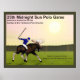 En polo-spelare som rider en mosa (Alces alces alces), en adukt som lyfts upp till strejka. Sol ligger lågt över den omgivande barrskogen. Texttexten "25 Midnight Sol Polo Game", "Sponsored by the North Star Polo Klubb", "Söndag at the Fairbanks Polo Grounds" och "Börjar omedelbart vid midnight Mosquitos och sort under åtta komma in free" visas också. Varje år leker Goldpanners basebolllaget i Fairbanks, Alaska i Midnight Sol Baseball Game. Spelet börjar kl. 12.00 på sommarsollen och lyfts bara av sol. Fairbanks ligger bara 160 sjömil söder om den arktiska cirkeln, sol börjar precis börja i norr när matchen börjar och, efter att den avslutats ungefär tre timmar senare, börjar sol åter att stiga upp - även i norr. Baseball är inte den enda sport som kan spelas på matchen. Och tanken på att rida en älg är inte ny. I norra Europa och Asien användes möss för att transportera förare och laster över ogästvänliga terräng. Som ett fäste har mosan ingen jämvikt när den korsar mossar och vindfällor, glider genom tjocklek, klättrar över sten och simmar snabbt över stora, farliga floder. I de täta barrskogar och mossar som täcker stora delar av norra Europa och Asien kan ett moder som rysk general Yermak Timofeyich inte köra ut från en älv när han började erövra Sibirien för Czar Ivan på 1600-talet. För att få överhanden över de sibiriska mosériderna förbjöd general Timofeitsch mosthållning, dödade av tama möss och jagade systematiskt ned mosfloder för att plantera, skada eller lemlästa dem offentligt som exempel för andra. Det är troligt att det bara var tillräckligt vanligt med dammuppfödning i de nordliga skogarna för att det skulle vara besvärligt, eftersom, som vi nu vet, alla deras fördelar som beaster av bördor är svåra för behållan i fångenskap. Om det hade varit en gemensam och lätt match skulle tuffen, äventyrliga kosackar säkert ha bytt berg och drivit mosresarna på lika villkor. I Europa användes även möss för att dra underbara avstånd över frysta slösar. En nackdel med detta sätt att använda en älg är att hästar som inte är bekanta med en älg vilt och blir okontrollerbara när de konfronteras med dessa egendomliga tittar varelser. På 1700-talet förbjöd stadsfullmäktige i den estniska staden Dorpat (Tartu) den tama mosen på sina gator. Man kan bara föreställa sig vilka havshästar som inte kan kontrolleras, som träffar en buss eller vagn, som kan slå sig ner på stadens smala gator efter att plötsligt ha kommit till ansikte till ansikte med en älg som ofrivilligt drar ett lår in i staden. Kung Karl XI från Sverige övervägde att sätta upp en kavalleriregim på älg, förmodligen för att dra nytta av den terror de skulle strejka in i fiendens hästars hjärtan. Ingen kanon- och musketbrand, inga lansar och sabers skulle behövas för att skingra fiendes kavallerianklagelse. Bara det faktum att en mosa dyker upp i slaggrunden skulle leda till att fiendes kavalli hamnade i en obarmhärtig flykt. Tyvärr kom kung julklappsplan till intet, och experiment med tama möss under detta århundrade visar tydligt varför. Moose skulle aldrig kunna blomstra som kavalleriberg på grund av sin katastrofala känslighet för djursjukdomar och på grund av de underbara svårigheterna att mata älgar ordentligt. Så sent som 1869 skrev den ryska zoologen och exploatören Alexander von Middendorff till tsarregeringen: "Till och med det civiliserade Europa har i dag misslyckats att tämja älgen, det djur som utan tvivel kan vara av underbar nytta. Vår regering bör göra allt den kan för att hålla detta djur i förvar. Det här är möjligt. Det skulle vara en underbar belöning, och det skulle också vara en ära." Efter 1700-talet blev mödouppfödning en bortglömd konst i nästan 400 år. I Sverige fördes i slutet av 1800-talet en debatt om det nationella värdet av att använda älgen som husdjur. Bland andra sak föreslogs att man skulle använda sig av moset vid postdistributionen, och det fanns ett förslag om att utveckla ett mosmonterat kavalleri. Sådana frieri förblev ogenomförda, främst på grund av att den omfattande jakten på möss nästan ledde till att den utrotades och på grund av aggressiviteten under ruttningsperioden. Tanken med mossen domesticering fick inte mycket dragkraft i det bisaristiska Ryssland. Men det återuppstod under 1930-talet i Sovjetunionen, och det föreslogs då att mosskavalleriet skulle kunna användas effektivt även i snö. År 1934 beordrade Sovjetregeringens naturreservkommitté att det skulle inrättas dammreservat (zapovedniks) och mösscentrum. Experimentellt arbete, som inleddes av Petr Alexandrovich Manteufel, tog ställe på flera platser: i Yakutia, vid Serpukhov Experimental Game Farm och i Buzuluksy Bor Nature Reserve i Orenburgregionen. De ryska vetenskapsmännen tog systematiskt itu med frågan om mödohållning och lyckades. De upptäckte att älgen kunde tränas till ge mjölk, bära laster eller rider, dra med sig slangar och stockar, gå till bete och gärna återvända till stallar. Arbetet avslutades dock inte i tid för Världskrig II, och när krig kom sopades hela idén om kavalleri som stridskraft bort. Efter krig drevs tanken på att tämja älgen igen, med fokus på jordbrukets använda. Man trodde att namn, vars elak i skörd vrider i ett algonkiskt språk, skulle kunna vara ett idealiskt sätt att förbättra utnyttjandet av biomassaproduktionspotentialen i norra Ryssland och östra Ryssland, som inte är särskilt lämpliga för vare sig livsmedelsplantering eller konventionell djurhållning. Om man skulle kunna odla mössen skulle man kunna ge dem praktiskt taget gratis mata, med hjälp av biprodukter från timmeravverkning: träd grenar och bark. Den första försöksdammanläggningen, som leds av Yevgeny Knorre, inleddes 1949 av personalen vid naturreservatet Pechora-Ilych, utanför bosättningen Yaksha i Komi. Sällsy