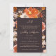 Midnight Terracotta Monogram Blommigt Gräns Bröllo Inbjudningar