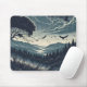 Escape into the quiet solitude of the "Midnight Valley." This atmospheric illustration features a dramatic mountain landscape rendered in deep slate and charcoal tones. With a winding river, dense evergreen forests, and birds soaring beneath a unique textured sky, this piece evokes the stillness of the wilderness at twilight. Its sophisticated, dark aesthetic makes it a perfect focal point for a modern living room, a quiet study, or a rustic cabin retreat.