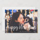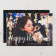 Missade tidsfristen för julkort? nyårsjubileet önskemål i stället med det här enkla och elegant fotokortet. Design innehåller ditt favoritutfallsorienterade vågrät/liggande orienterat foto med "Gott nytt år" i handskrivet stil-avslappnad, vit skripttypografi. Anpassa med er anpassningsbar hälsning och året vid grund. Kort som går tillbaka till en festlig svart och vit konetti mönster.