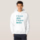 This hoodie is much better than I expected. top quality, true sizing, and really comfy. I was a bit worried that the lettering would be too dark on the navy blue hoodie, but once it arrived it was perfect. Easy to see the words, and the quality of the wording is fabulous. I will be buying more hoodies in future