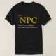 Skjorta som påstår "mig förmiddagen en NPC, därför att I-förmiddagen ingen spelare, men den säkra förmiddagen för I ett tecken.", För de, som inte är, står gamers NPC för Non-spelare tecken. Det är en perfekt gåva för gameren som inte är en spelare. Dess en ordlek med det menande av spelare och teckenet beroende av sammanhanget.