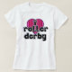 Jag hjärtarullen derby i svartvit (med damma av av blått) stjärnastilsort på shock rosa och en svartskalle och crossbones fyllde hjärta