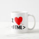 Mig HTML-mugg för hjärta (kärlek). En mugg med fullständigt anpassadetext "mig", kärlekhjärtor "HTML". Denna den kalla geeknerden som jag älskar HTML-muggen, är fullständigt anpassadet, tillfogar din text och bilder. En underbar geeky gåva för din datorHTML som kodifierar vän eller familjemedlemmen!