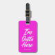 Komm och gå i stil med denna rosa bagagemärkre för skraj neon. Den presenterar ord "som mig, skrivar förmiddagen Outta här" i en unik vit stilstilsorten. Under texten är en valfri fläck för det din eller din gåvamottagares namn eller initialer.